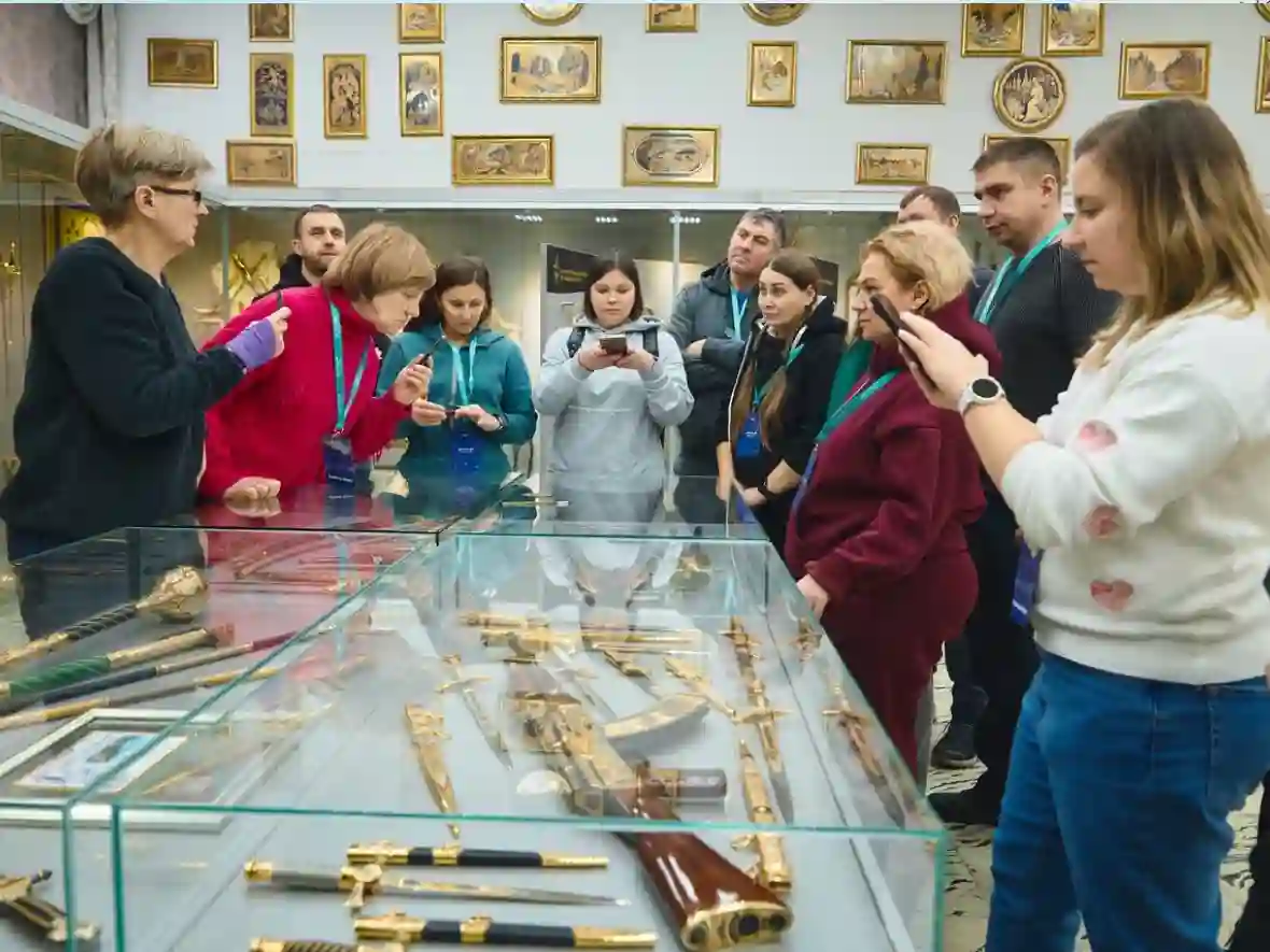 На второй день экспедиция продолжилась поездкой в Златоуст — город с богатой историей металлургии и оружейного ремесла. Участники посетили оружейную фабрику «Арсенал», где познакомились с традициями златоустовской гравюры и приняли участие в мастер-классе по созданию памятных клинков с индивидуальными символами и надписями.